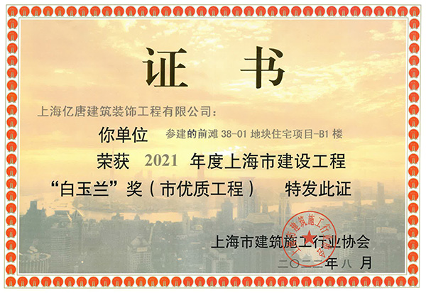 2021年度上海市建設工程“白玉蘭”獎
